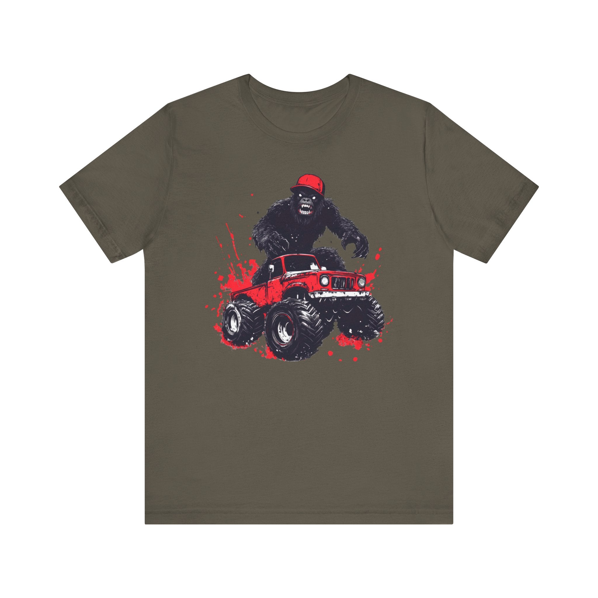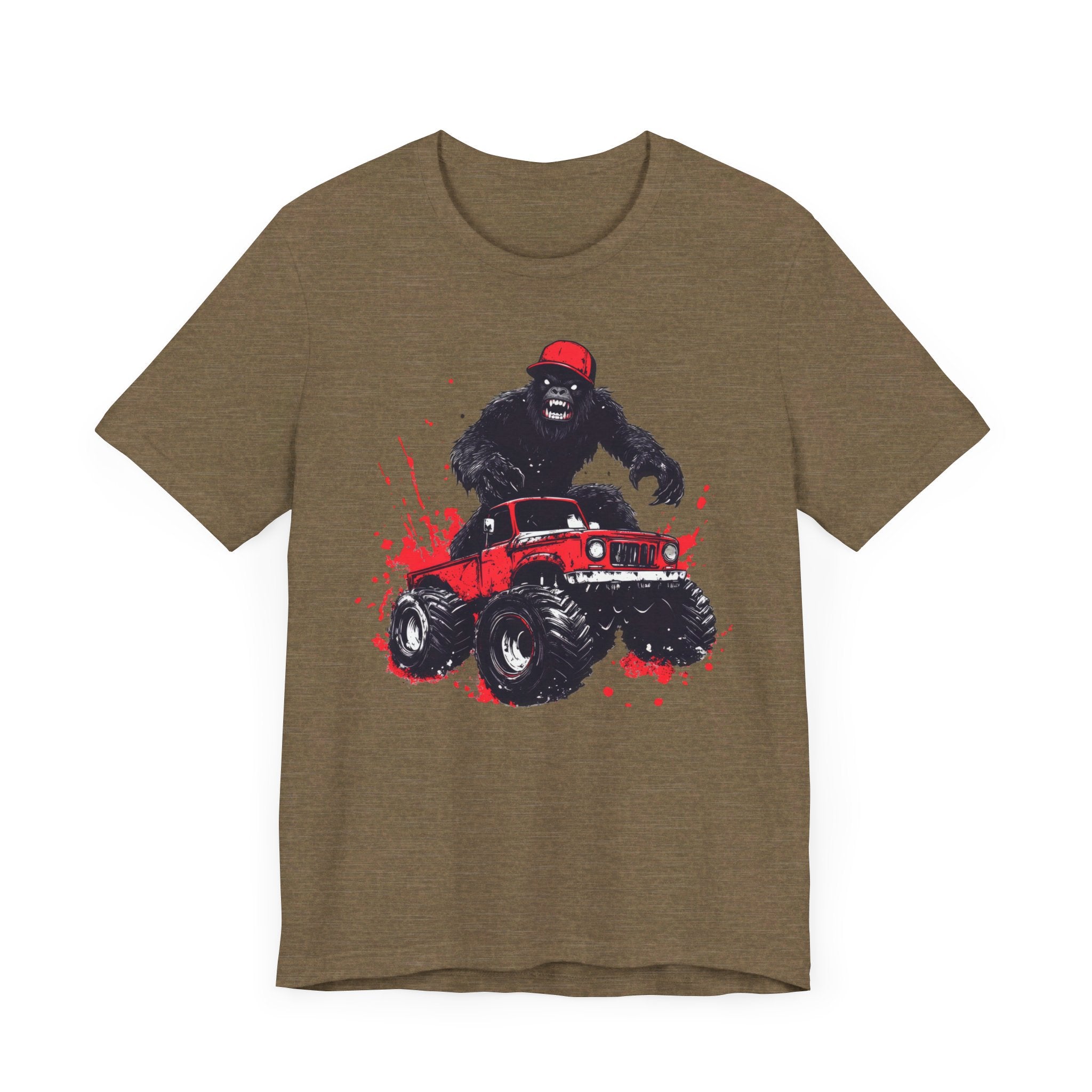 Bigfoot Monster Truck T-Shirt Funny Adventure Design Rev up your style with our Bigfoot Monster Truck T-Shirt 🦧🚙. This hilarious and adventurous design features Bigfoot driving a monster truck, perfect for those who love quirky and fun fashion. Made from soft, high-quality fabric, this tee ensures comfort and durability for all your adventures. Whether you’re an outdoor enthusiast, a fan of cryptids, or just enjoy unique graphic tees, this Bigfoot Monster Truck T-Shirt is a must-have addition to your wardrobe. Make a bold and funny statement with this one-of-a-kind design! 😂🌲 Why You’ll Love It: 👕 Ultimate Comfort: Made with 100% Airlume combed and ring-spun cotton, this tee offers a lightweight (4.2 oz/yd² or 142 g/m²) and breathable fabric that’s perfect for both active and leisure wear. 👔 Versatile Style: The retail fit and classic crew neckline make this shirt perfect for casual outings and semi-formal settings alike. Accessorize easily to create your unique look! 👍 Durable Quality: Ribbed knit collars and tapered shoulders ensure a better fit over time, while dual side seams hold the garment’s shape longer, wash after wash. 🌱 Ethically Made: Bella+Canvas products are manufactured in the USA and internationally in a humane, no-sweat-shop, sustainable manner. Proudly part of the Fair Labor Association and Platinum WRAP certified. 🔖 No Irritation: Featuring a tear-away label for added comfort, say goodbye to annoying tags! Fabric Details: 🧵 Solid Colors: 100% Airlume combed and ring-spun cotton 🧵 Ash and Heather Prism: 99% Airlume combed and ring-spun cotton, 1% polyester 🧵 Heather and Solid Blends: 52% cotton, 48% polyester 🧵 Athletic Heather and Black Heather: 90% cotton, 10% polyester Perfect For: 🎁 Gift Giving: An excellent gift for birthdays, holidays, or any special occasion for cat and nap lovers. 🌳 Everyday Wear: Whether you’re running errands, meeting friends, or just relaxing at home, this shirt is your go-to choice.