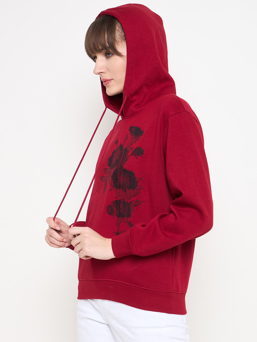 Madame Floral Print Adorned Cotton Blend Red Sweatshirt